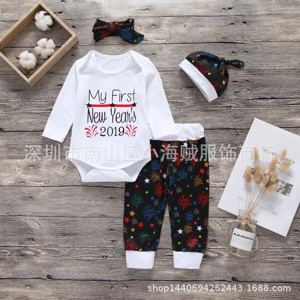 Four pieces of new fund of 2019 autumn winters The fireworks pattern cotton children's suit Long sl