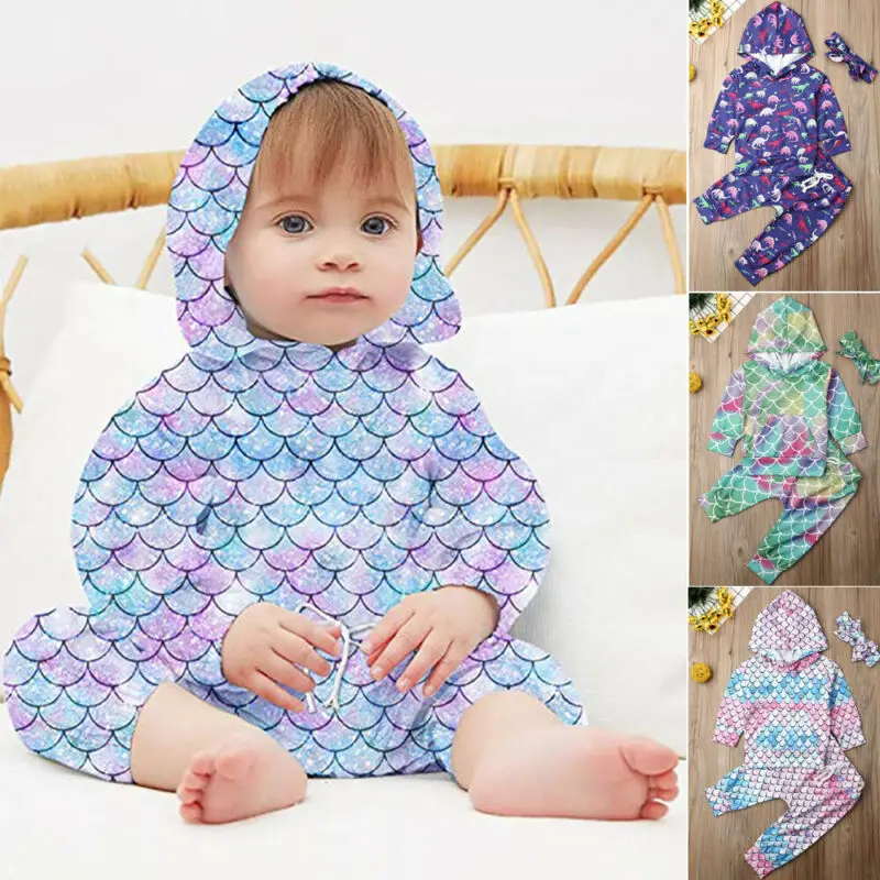 Autumn Winter Clothes 3Pcs Newborn Baby Boy Girl Hoodie Tops+Pants Outfits Mermaid Costume Set