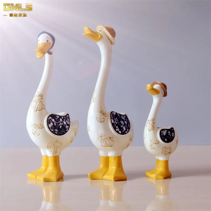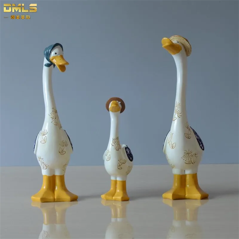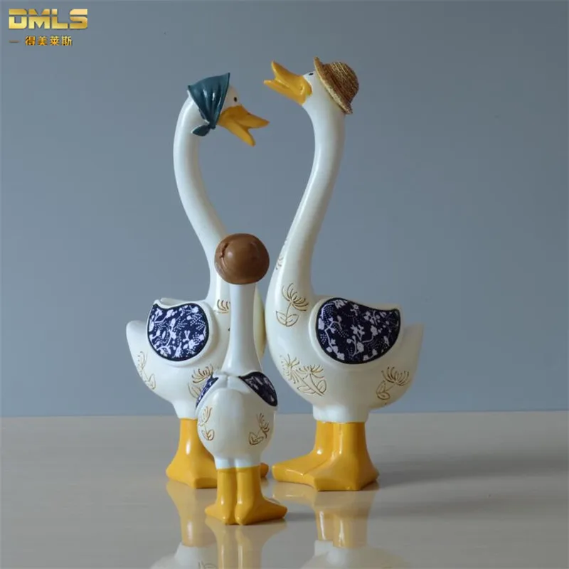 DMLS Family Duck Figurines Kid Toy Resin Baby Duck Ornaments Children Doll Children Drawing Room De