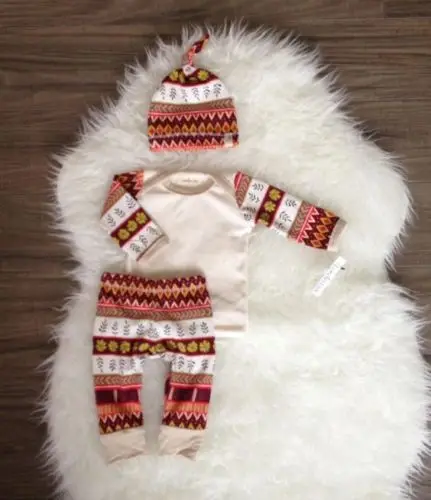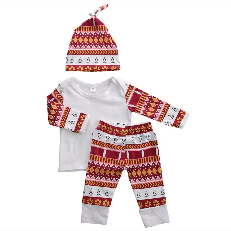 Baby Boy Girl Christmas Clothes Set Geometric Patterns Print Long sleeve Bebe Sleepwear Suit Tops +