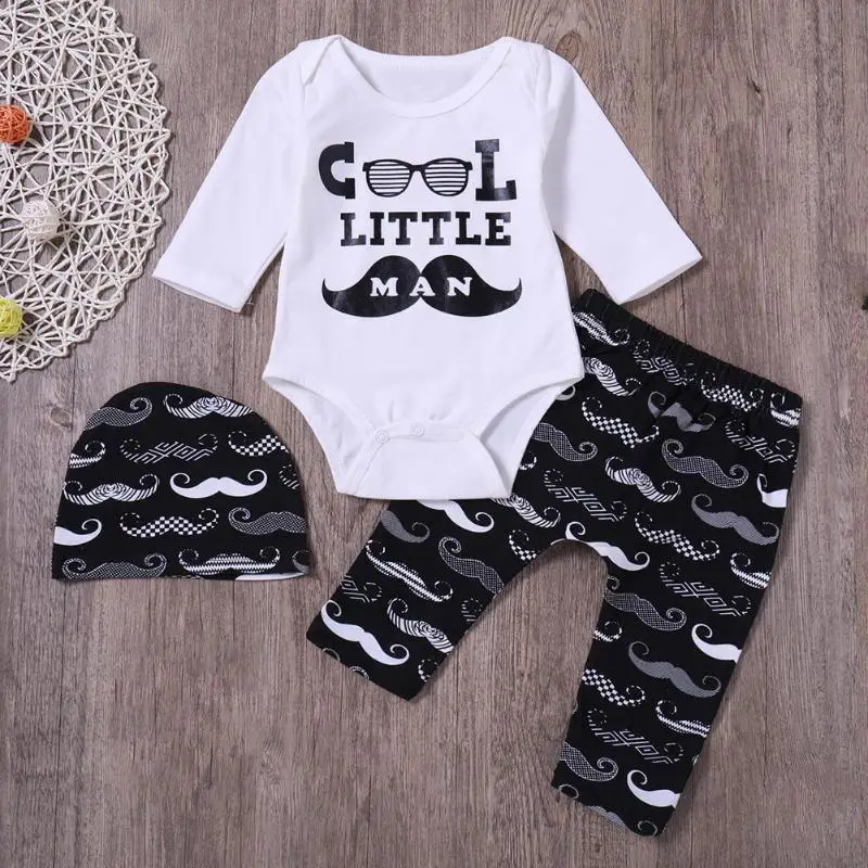 BEST 3pcs/Set Newborn Boys Fashional Costume Set Half Sleeve Printed Children Clothing Baby Bodysuits Ov