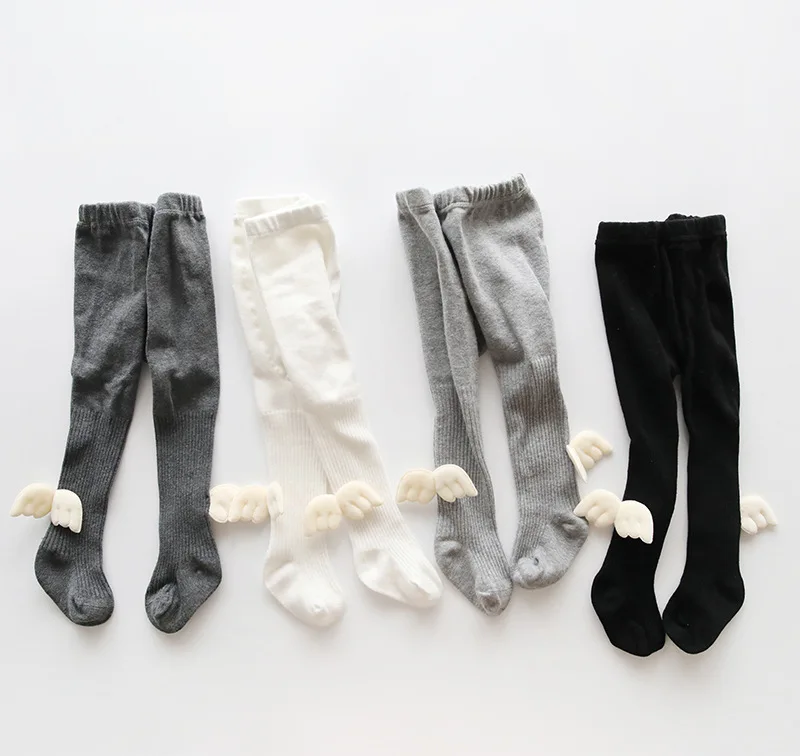 Autumn Winter Baby Girls Pure Cotton Knitted Angel Wings Pantynoses Kids Casual All-match Stockings