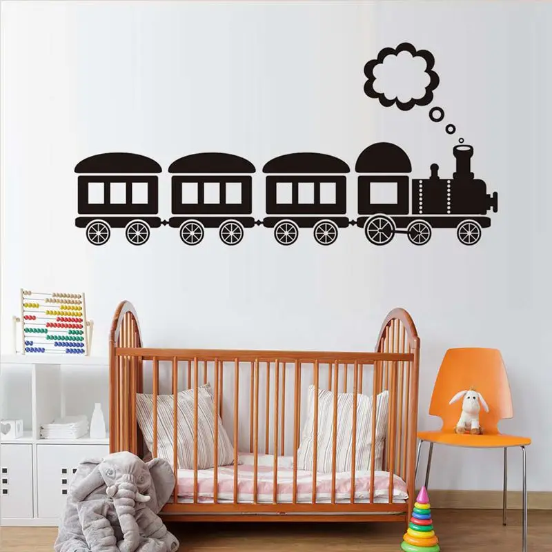 Creative Train Vinyl Wall Stickers Funny Cartoon Train Art Wall Decals For Kids Rooms Baby Bedroom