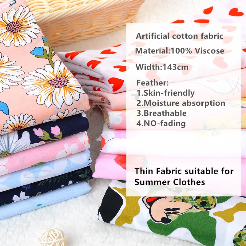 BEST SELLER 143cm Wide Artificial Cotton Fabric for Summer Dress Meter Cartoon Print Viscose Breathable Fabrics