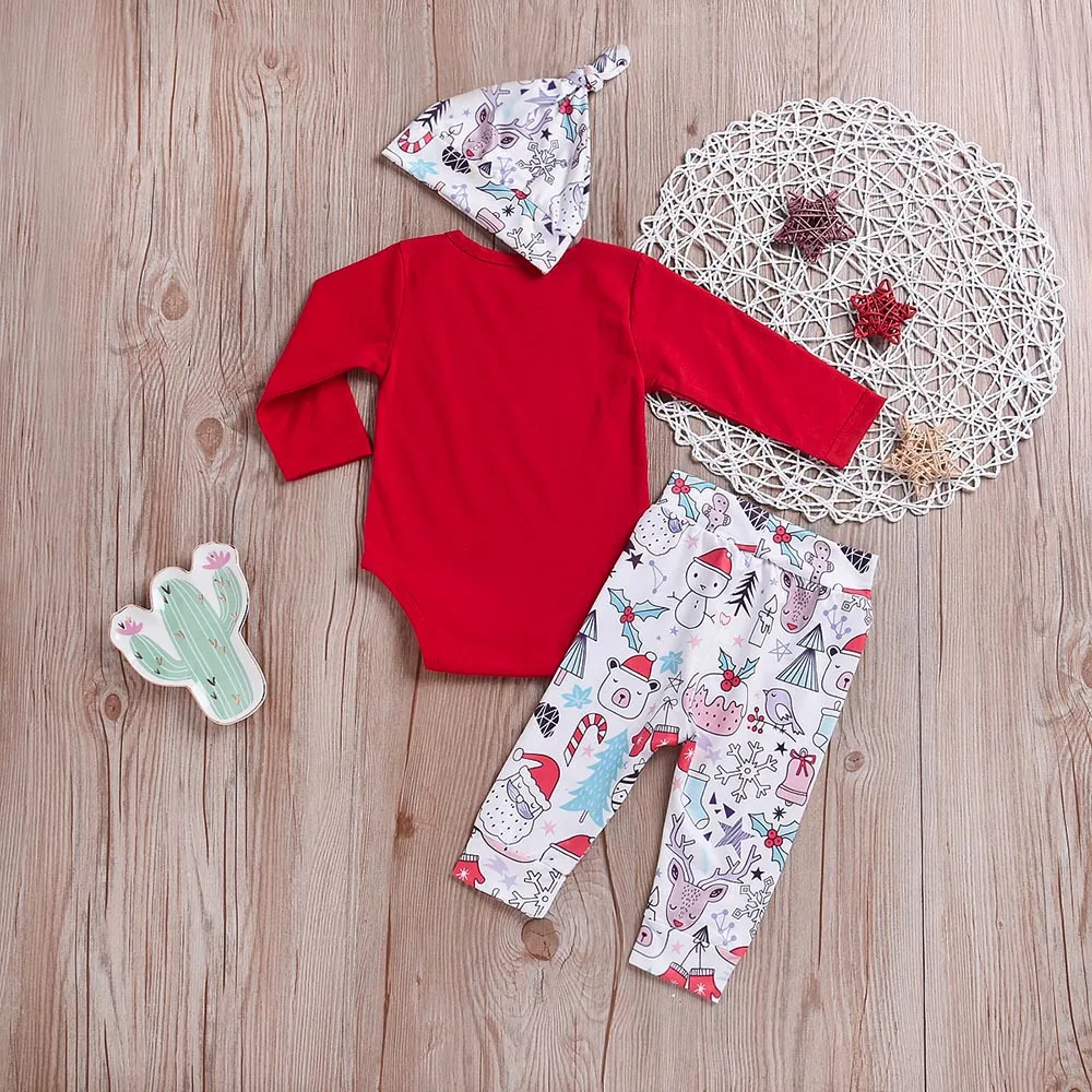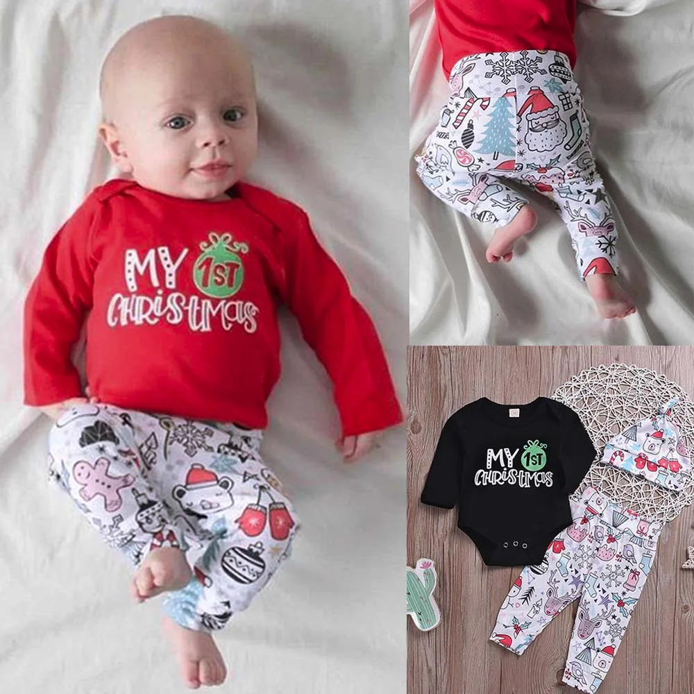 HOT SALE 3PCS Christmas Newborn Baby Boy Letter Top Deer Cartoon Print Pants Clothes Sets