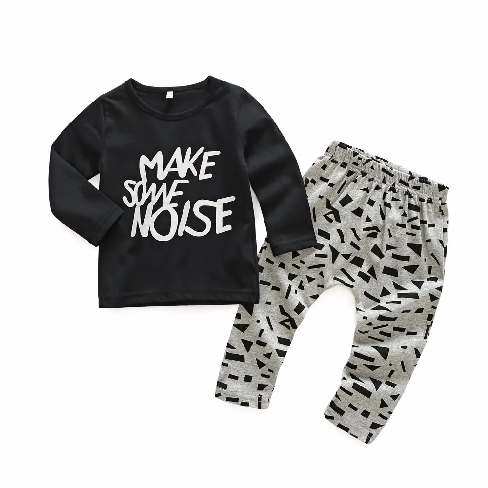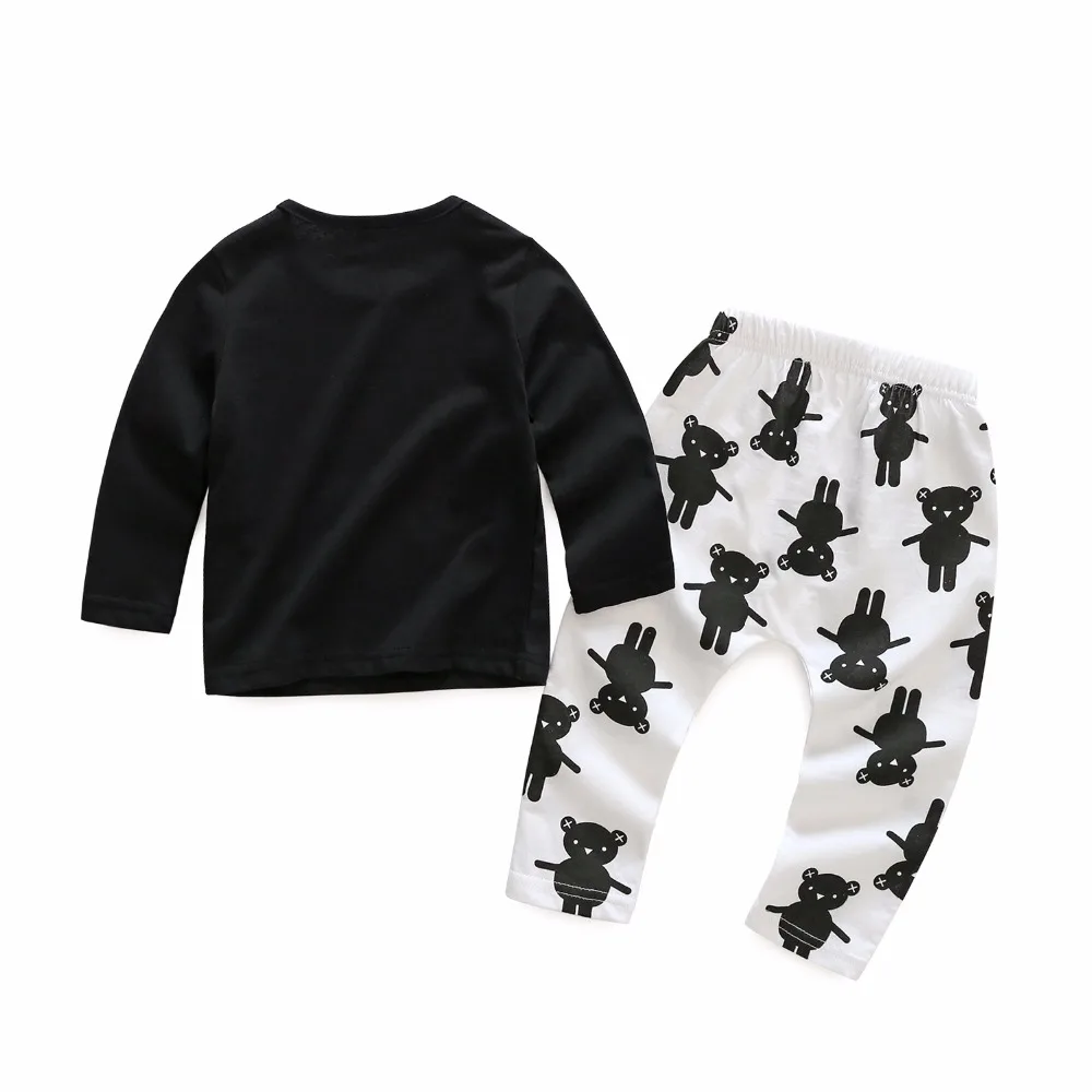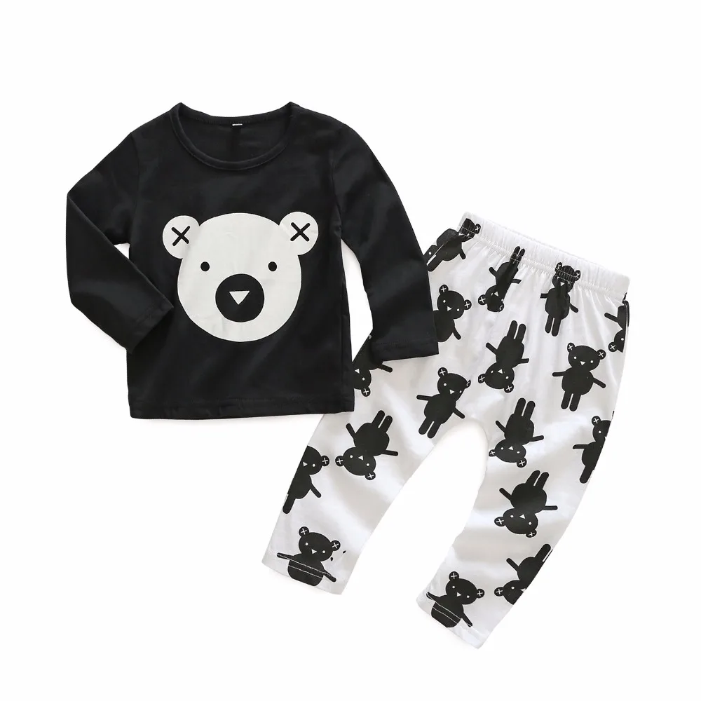 Autumn summer baby boys black long sleeve t shirts pant set high quality infant cartoon bear clothe