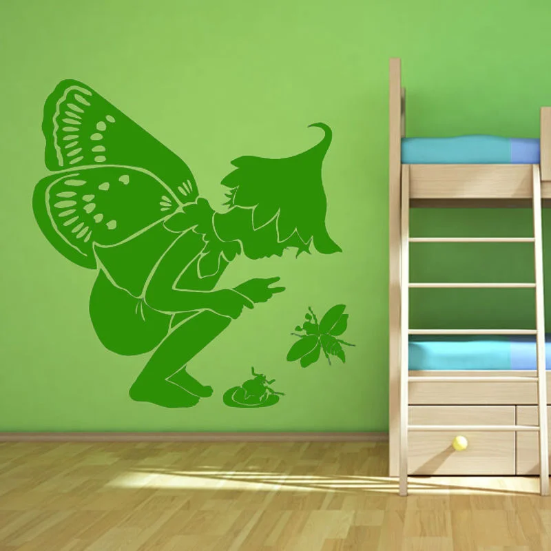 BEST QUALITY Bare Feet Fairy And Insects Wall Sticker Babys Room Wall Decor Mural Removable Vinyl Wall Sticker C