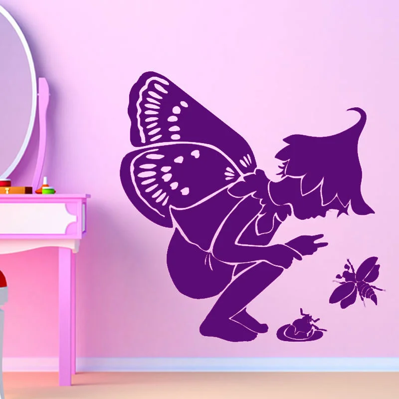 Bare Feet Fairy And Insects Wall Sticker Babys Room Wall Decor Mural Removable Vinyl Wall Sticker C