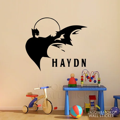 DIY Personalized Name Vinyl Batman Wall Stickers Home Decoration Baby Nursery Bedroom Art Murals Wa