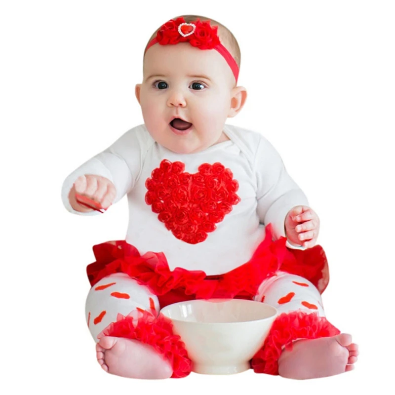 Baby Girl Clothing Set Toddler Girl's 3 PCS Suit Outfit Love Pattern Costume Tutu Skirt T Shirt Leg